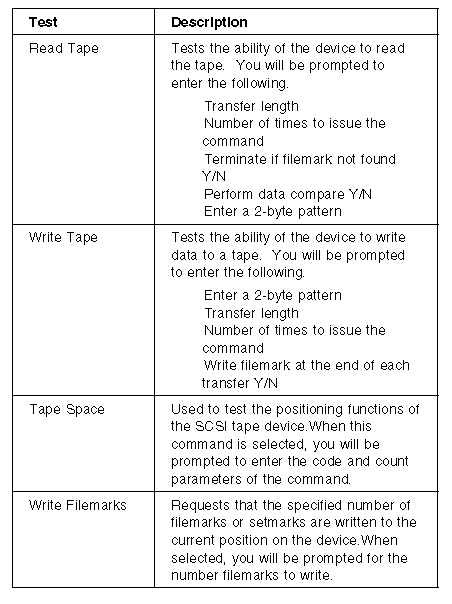 PCServer330 - Selecting a Test (Advanced Mode), Test Descriptions (Advanced Mode)