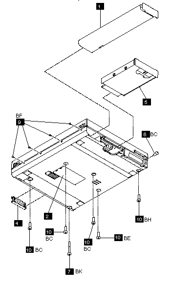 9. Remove the four screws (BF) located on the front, below the keyboard, shown in the figures.