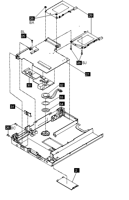 25. Remove the screw (BL) holding in the bottom system board, shown in the figure.