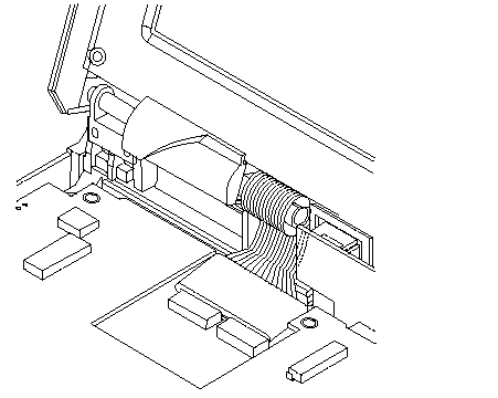 16. Detach the microphone cable from the top system board, shown in the figure. Replacement: Make sure that the two aluminum spacers are in place. After you reattach the microphone cable, place any excess cable behind the PCMCIA slot assembly. For information on routing the backlight cable, see 'Routing the Backlight Cable—.