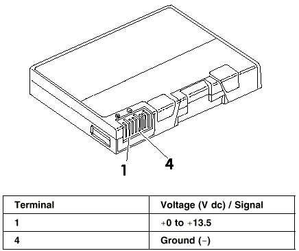 4. If the voltage is more than +11.0 V dc, measure the resistance between the battery terminals 3 and 4. The resistance must be 4 to 30 K ohms.