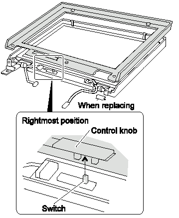 Align the LCD front-cover control knob and inverter-card switch to either the leftmost or the rightmost position, so that they engage easily, as shown. After replacing the LCD front cover, make sure that the control knob works correctly.