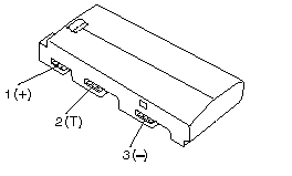 3. Using a low-power ohm meter, measure the resistance at the battery terminals between 2 (T) and 3 (- ). The resistance must be 4 kilohms to 30 kilohms. If the resistance is out of range, replace the battery pack.