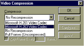 If you wish to capture video, do not use the "Microsoft® H.261 Video Codec" or "Microsoft® H.263 Video Codec" drivers.