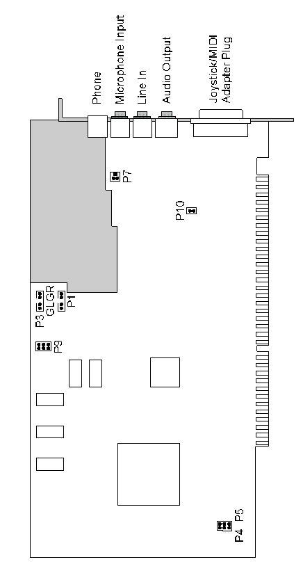 P4 and P5 are jumpered to I/O address CE3O. The I/O jumper setting can be changed to correct conflicts with other cards using I/O addresses or Joystick port settings.