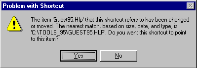 "Missing Shortcut" and "Problem with Shortcut" errors when running SETUP95.EXE - When running SETUP95.EXE, the user may encounter many errors similar to the one below: