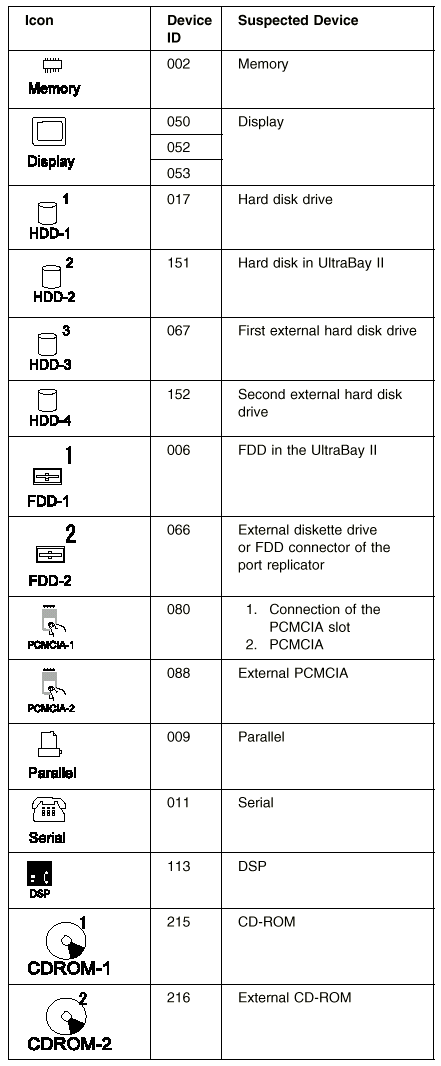 Device ID: If an error is detected by the diagnostic tests, a three-digit device ID is displayed, indicating the suspected device.
