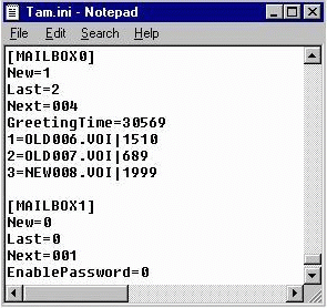 4. When the TAM.INI file comes up, scroll until you find the section for the [mailbox#] containing the messages to be deleted.