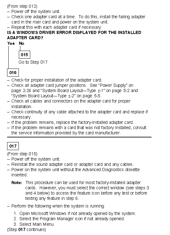 Aptiva - 2144/2168 (SL-F/H/I) Diagnostics - Diagnostics for factory-installed riser card, sound card, or adapter cards not supported by advanced diagnostics