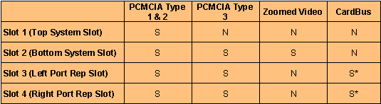 Note: Zoomed Video is only available through bottom system PC Card slot.