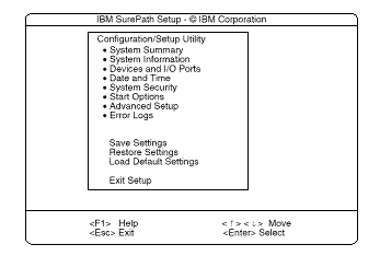 From the Configuration/Setup Utility main menu, you can select settings that you want to change. The Configuration/Setup Utility main menu is similar to the following screen.