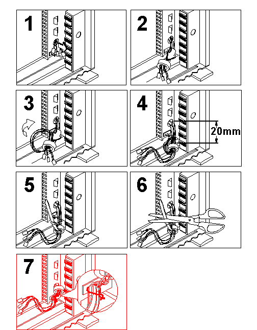 - Fasten the cables around the core such that the core is within 20mm from the circular hole (diagram 4).