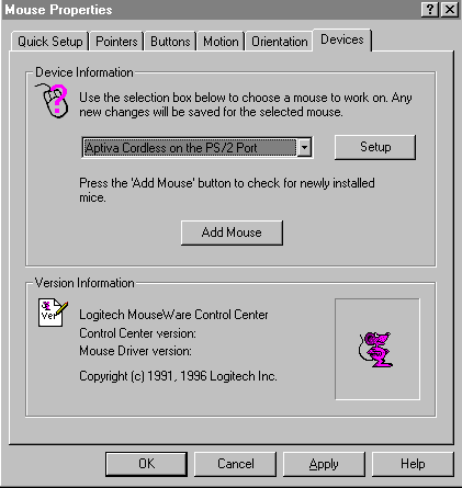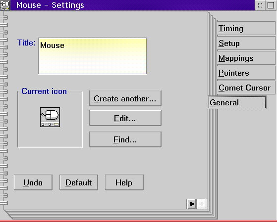 General - Allows the user to change the name and icon for the mouse setting within system setup.