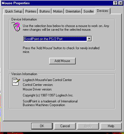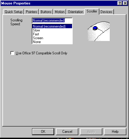 There are seven tabs in the mouse setting for the scroll point mouse.