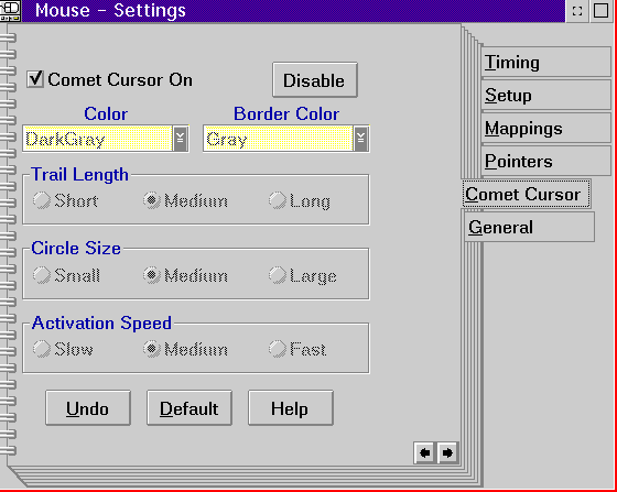 Comet Cursor - Enables or disables pointer trails and allows adjustment of the trail if enabled.