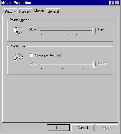 3. Motion - Allows the user to adjust the speed that the pointer moves across the screen, and the size of the trail behind the pointer.