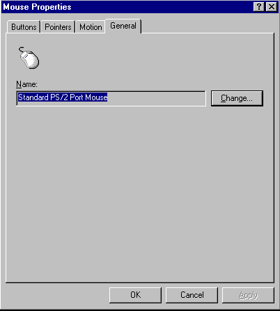 4. General - Allows the user to define what type of mouse is installed. In this case it is a Standard PS/2 Port Mouse.