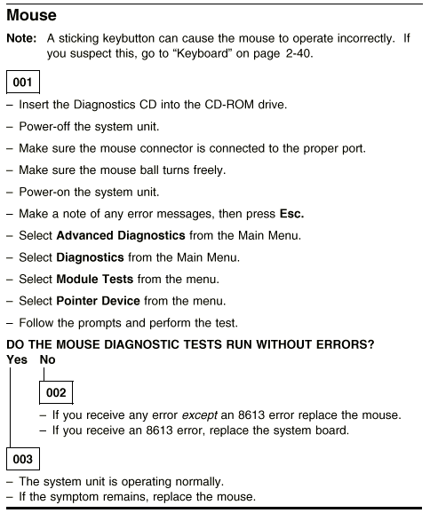Aptiva - 2159 Diagnostics - Mouse