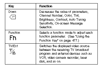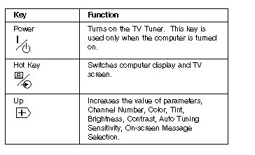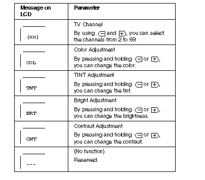 Each time you press the Function key ( ), one of the following messages (called On-Screen Message ) appears at the top left corner of the LCD. The changed values are automatically saved when you return to the TV Channel On-Screen message. The values are not saved when you power-off the TV Tuner without returning to this message.
