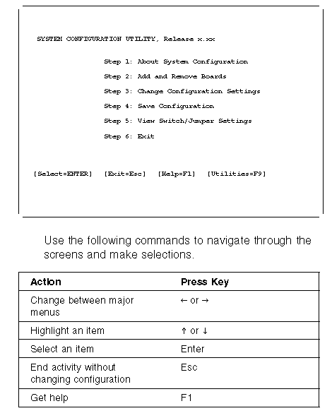 Step 1: About System Configuration: Select About System Configuration for an overview of the program. You can select this choice from a menu for specific information about each function.