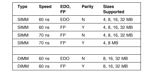 IBM PC330/PC350 (Type 6577, 6587) - Supported memory configurations