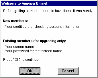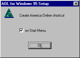 Once all of the America Online files are installed, the following box will be displayed. Click OK.