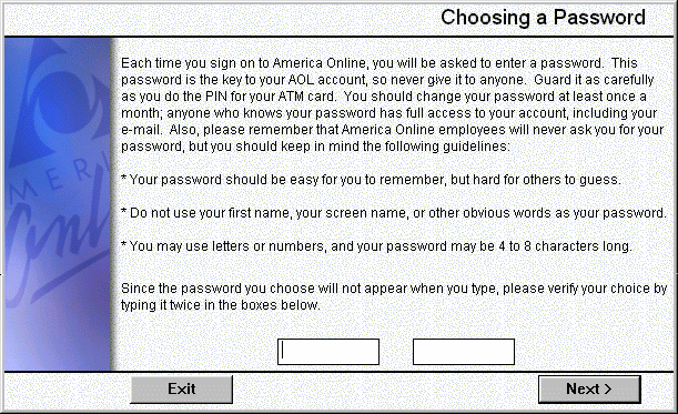 Type your password twice - one time in each box provided. Make sure that you remember your password.