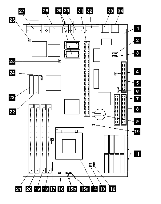 PC 340 Series (Type 6560) - Pentium 100/133/166 MHz System Board Locations: