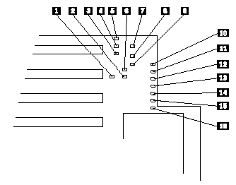 A simplified layout of the section of the I/O board containing the LEDs is shown in the following illustration.