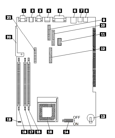 IBM PC300PL (Type 6562, 6592) - System Board Diagram/Locations