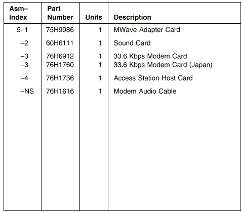 Aptiva - Mwave, Host, Sound, and Modem cards