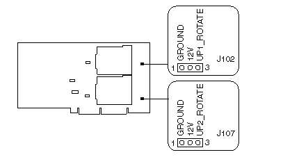 J102 and J107, 1-2 Provides power to fan sink Factory default setting |