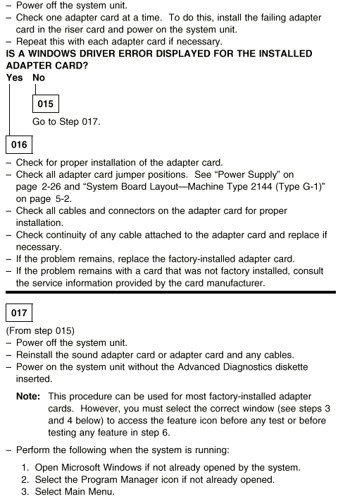 Aptiva - 2144-S15 Diagnostics - Diagnostics for factory installed riser card, sound card, or adapter card not supported by advanced diagnostics