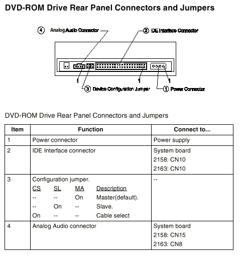 Aptiva - 2158/2163/2164 CD-ROM/DVD-ROM jumper settings
