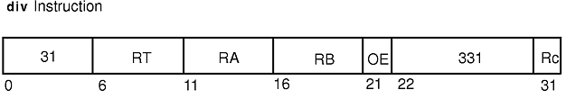 Note: The div instruction is supported only in the POWER architecture.