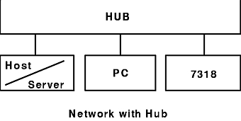 The Network with Hub figure illustrates a typical way to set up a network with a hub.