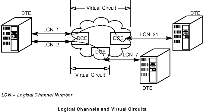 Logical channels are the communications paths between a DTE and its data circuit-terminating equipment (DCE). For 15 simultaneous connections across a network, the network supplier must provide 15 logical channels. Valid logical channel numbers range from 1 to 4095 (logical channel number 0 is usually reserved for diagnostics). The network provider assigns the specific logical channel numbers, and each number must match between the DTE and its DCE. For example, a DTE configured to use logical channels 51-58 could not communicate with its DCE using logical channels 3002-3009. However, when a DTE communicates with another DTE across a packet-switched data network (PSDN), the DTE logical channel numbers do not have to match. The logical channel is not end-to-end in the network; it must only match between each DTE/DCE pair, as shown in the Logical Channels and Virtual Circuits figure.