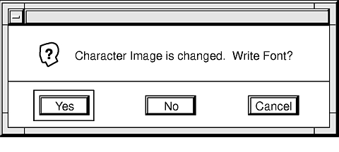 The Exit suboption exits the raster editor. If you have changed the character image displayed in the editing area and have not saved it, a window pops up that allows you to save your work. See the figure for an illustration of the window that allows you to save an altered character image.