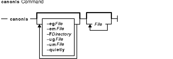 canonls [ -egFile ] [ -emFile ] [ -FDirectory ] [ -quietly ] [ -ugFile ] [ -umFile ] [ File ...]