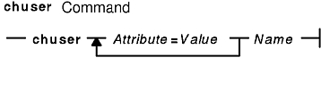 The chuser command changes attributes for the user identified by the Name parameter. The user name must already exist as an alphanumeric string of 8 bytes or less. To change an attribute, specify the attribute name and the new value with the Attribute=Value parameter. The following files contain user attributes that are set by this command: