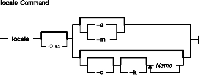If you specify the locale command with a locale category name and no flags, the locale command writes the values of all keywords in the locale category specified by the Name parameter. If you specify the locale command with a locale keyword and no flags, the locale command writes the value of the keyword specified by the Name parameter.