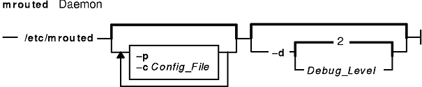 /usr/sbin/mrouted [ -p ] [ -c Config_File ] [ -d [ Debug_Level ]]