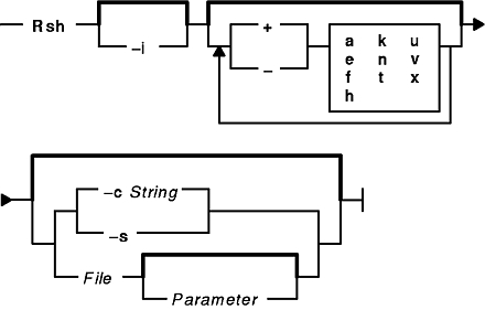 Rsh [ -i ] [ { + | - } { [ a ] [ e ] [ f ] [ h ] [ k ] [ n ] [ t ] [ u ] [ v ] [ x ] } ] [ -c String | -s | File [ Parameter ] ]