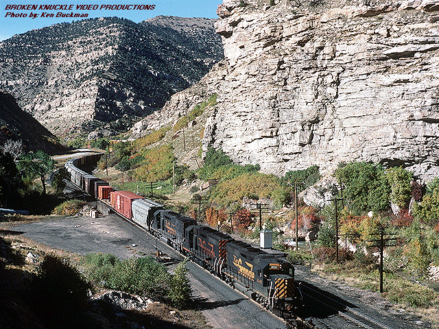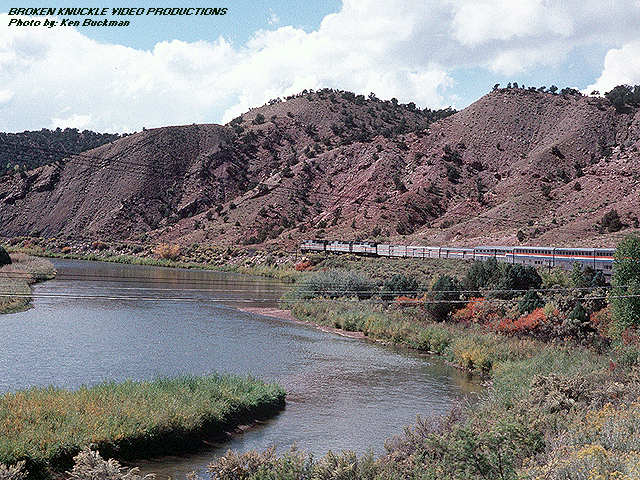 [800x600x256] "CALIFORNIA ZEPHYR" traveling through some Western Colorado scenery. Shot from the last car of the train. From: BROKEN KNUCKLE VIDEO PRODUCTIONS. [640x480x256] |