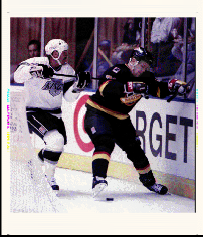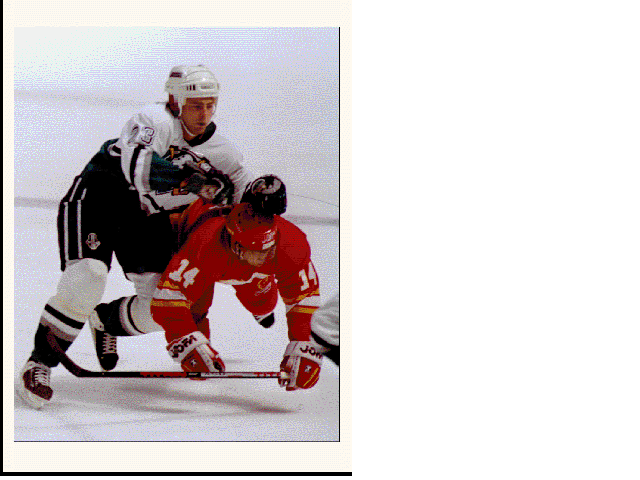| s04ndx.gif | 57946(bytes) | A Mighty Duck crosschecks a Flame in the back