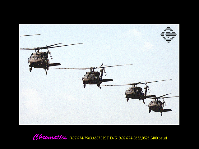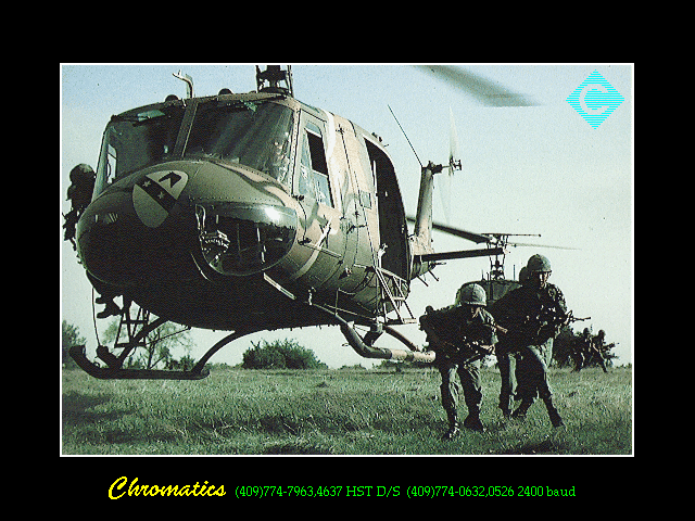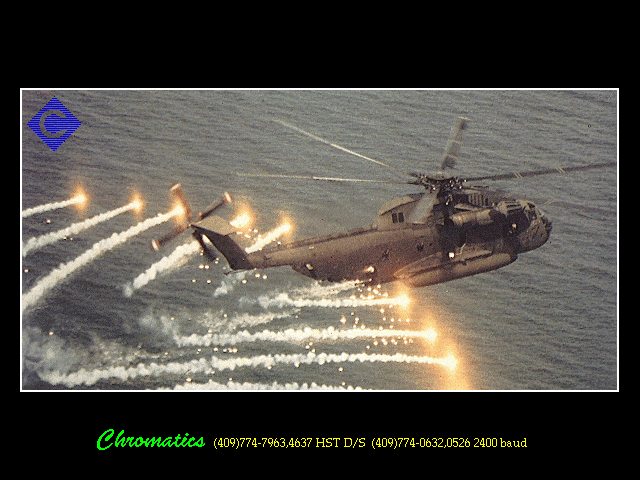Godard Space Flight Movie BBS. Nice colors and resolution Barker. Hi resolution .PCX - 6 pictures. resolution .PCX - 8 pictures. Nice! (640x496x256) (640x480x256) |