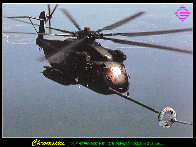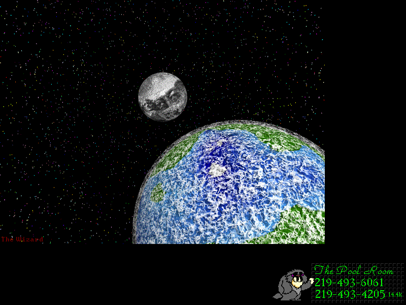 Black Hole In The Sky Godard Space Flight Movie BBS. Nice colors and resolution Barker. Hi resolution .PCX - 6 pictures. resolution .PCX - 8 pictures. Nice! (640x496x256) |
