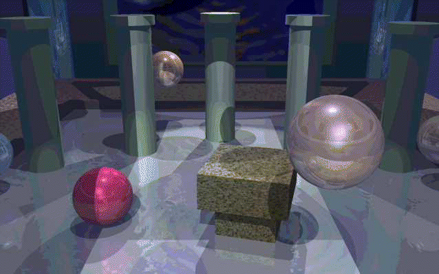 | teapool.zip | 147295(bytes) | Raytracing of teapot on a pool table gif: