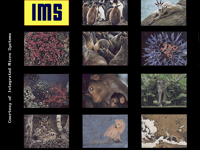 goats. 640x480x256 resolution 12th in a great series her pup in a pack of seals. 640x480 x256 resolution. 10th in a wildlife series female lion licking her cub. 640X480X256 RESOLUTION. 6th in a wildlife series Simple mouse or keyboard operation in an all graphics menu. Supports: CUT, Dither, Save, and simple image enhancement controls. Print your HP Laserjet or HP Deskjet printer etc Supports all standard VGA cards up to 1024 x 768 with 256 colors. A VESA driver is required for Super VGA Modes. |